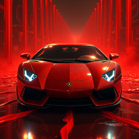 the dramatic atmosphere. The overall effect is one of high-octane energy and speed, suggesting that the car is ready to hit the road at any moment. The image's color scheme is dominated by shades of red, with