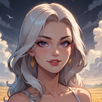 rosy cheeks, giving her an endearing appearance. In the background, a serene field of golden wheat stretches out under