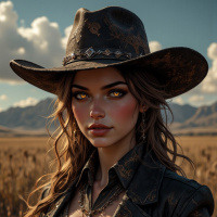 wavy hair and is dressed in a dark-colored shirt with a plunging neckline, adorned with a necklace featuring a cross pendant. The woman's attire is complemented by dangling earrings. In the background, a mountain range stretches across the horizon, set against
