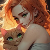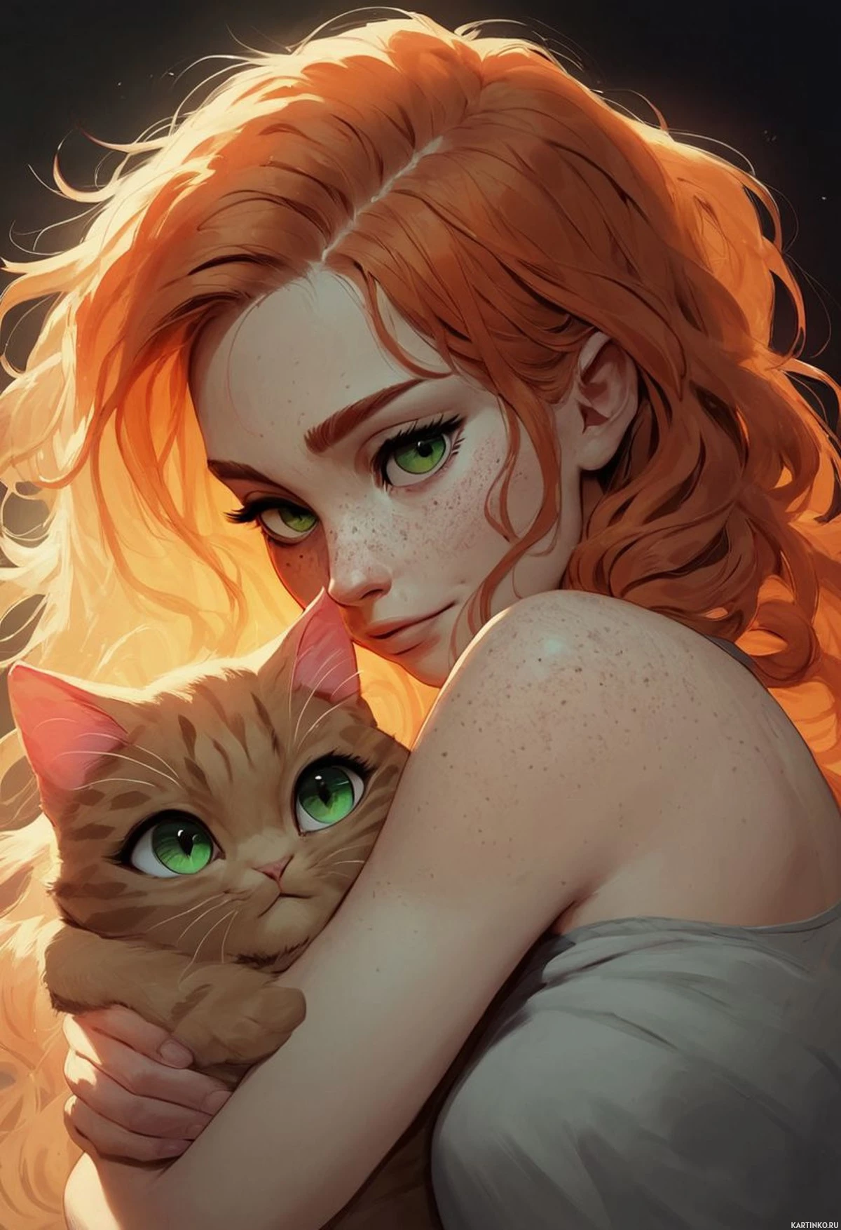 Фэнтезийный рисунок рыжеволосой девушки и её кошачий друг Больше картинок по схожим темам