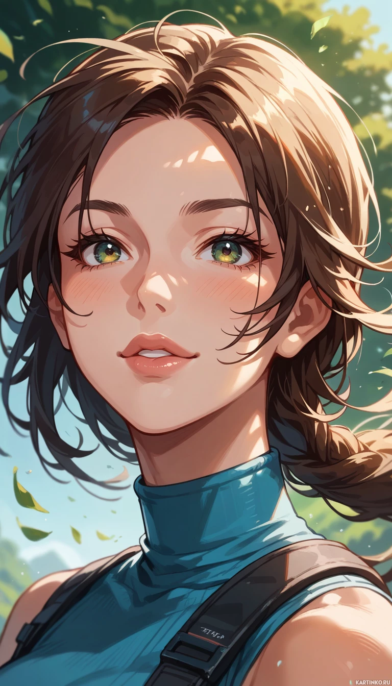 loose waves, framing her face and adding to her overall appearance of youth and vitality. Overall, the image presents a positive and uplifting portrayal of a young woman who exudes confidence and self-assurance. The use of bright colors and natural lighting adds to the overall feeling of optimism and energy that pervades the image.