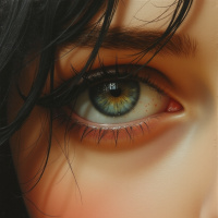 dark hair visible in the background. The image is likely intended to be used as an illustration or graphic element. * A woman's eye: + The eye is looking directly at the viewer. + The iris is brown and yellow, with