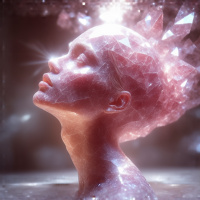 ethereal beauty, as if the girl has been transformed into a living, breathing piece of crystal. The use of rose quartz adds