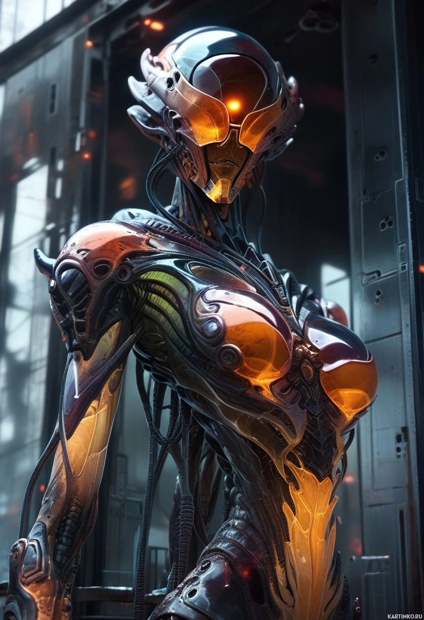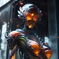 translucent material that glows from within. Its surface is covered in intricate details, such as lines, curves, and patterns that give it a sense of depth and texture. Overall, the image suggests that this robot is a highly advanced, cutting-edge creation designed for some specific purpose or function. It may be intended for use in space exploration, combat, or other high-tech applications where its unique design and capabilities would be valuable assets.