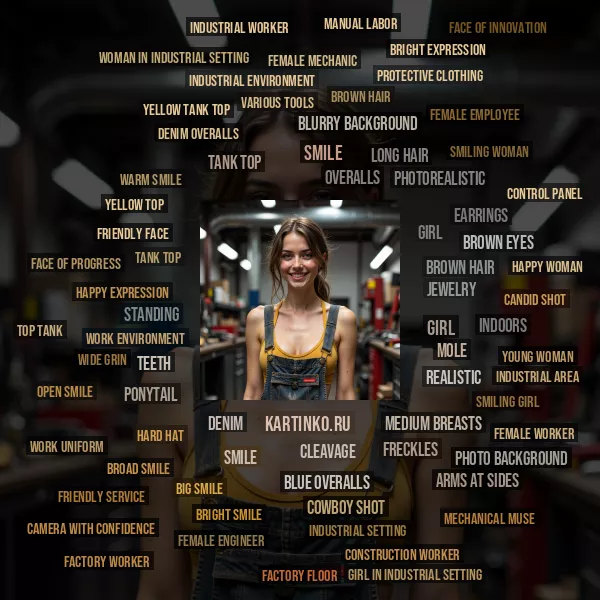 the industrial setting, the woman's smile conveys a sense of happiness and contentment, suggesting that she enjoys her work and finds satisfaction in being able to fix things. Overall, the image presents a snapshot of a hardworking individual who takes pride in their craft.