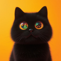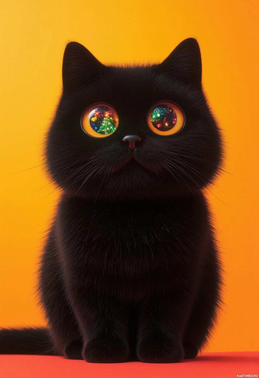 fluffy coat. As we examine the image more closely, we notice that the cat's eyes seem to be reflecting a kaleidoscope of colors, as if they are gazing into a rainbow-colored world. This adds an extra layer of depth and interest to the portrait, making it feel almost three-dimensional. Overall, this is a truly remarkable image, one that captures the essence of a beautiful and endearing animal in a way that is both captivating and intimate.