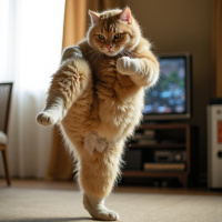 orange color and appears to be long and fluffy. * **Cat** * Standing upright on its hind legs. *